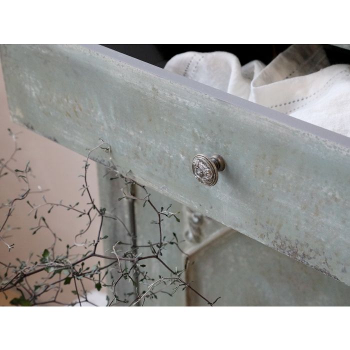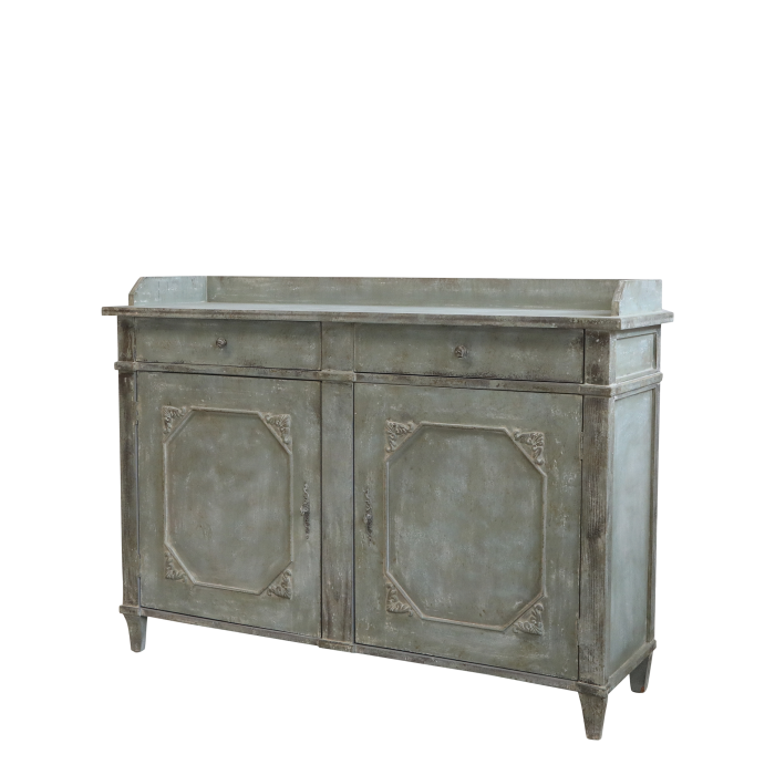 Bellissima credenza realizzata in robusto legno di Pino con 2 cassetti e 2 ante a battente. La lavorazione è interamente artigianale con finitura effetto invecchiato.