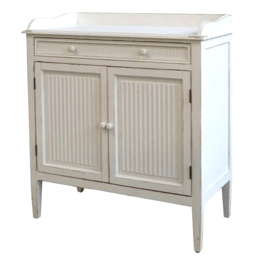 Bellissima credenzina realizzata in legno di Abete, dotata di 1 cassetto, 2 ante ed 1 ripiano centrale.