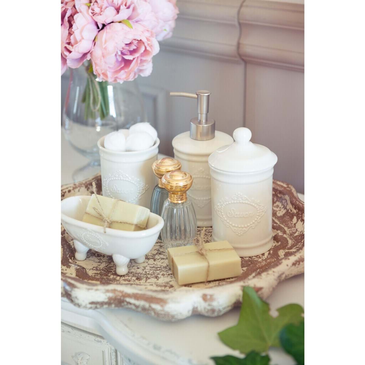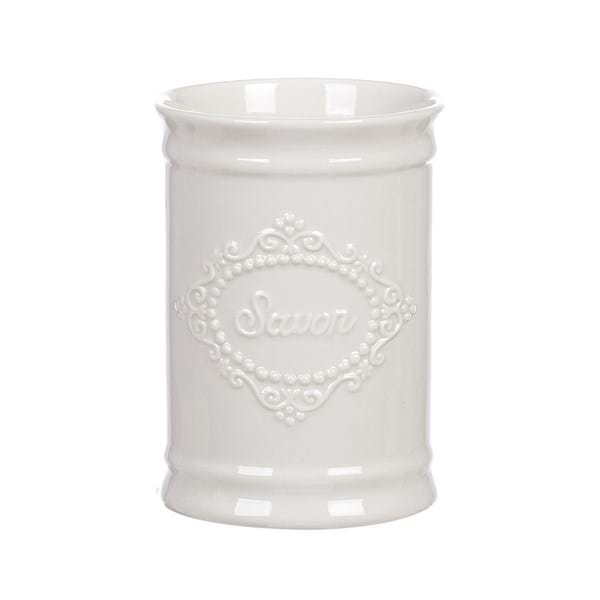 Carinissimo bicchiere porta spazzolini realizzato in ceramica decorato con scritta “Savon” in rilievo. Utilizzabile anche come porta matite o pennelli per il trucco.
