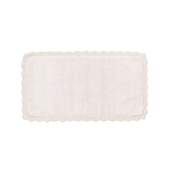 Bellissimo tappetino bagno realizzato in puro cotone, con bordo lavorato crochet. Colore Grigio Perla