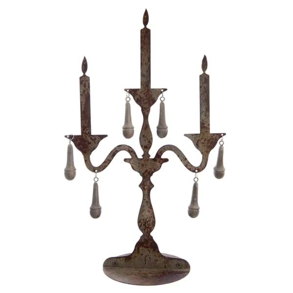 Bellissima decorazione realizzata in metallo a forma di candelabro con pendenti.