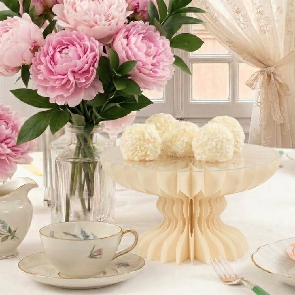 Bellissima alzatina realizzata interamente in carta con piano in plexiglass.