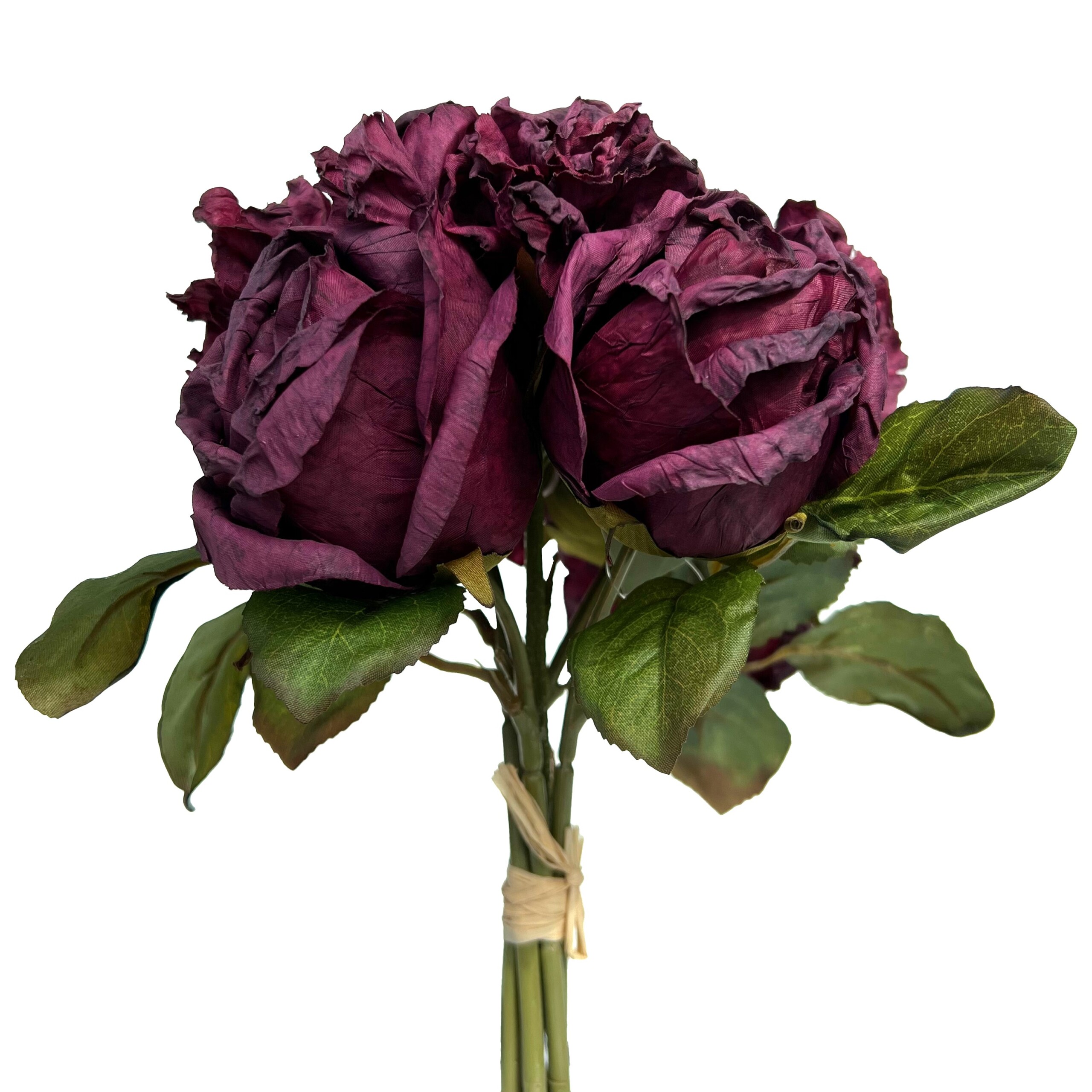 Bellissimo bouquet misto di Rose e Ortensie artificiali, realizzate in tessuto con una speciale lavorazione artigianale per un realistico effetto essicato.