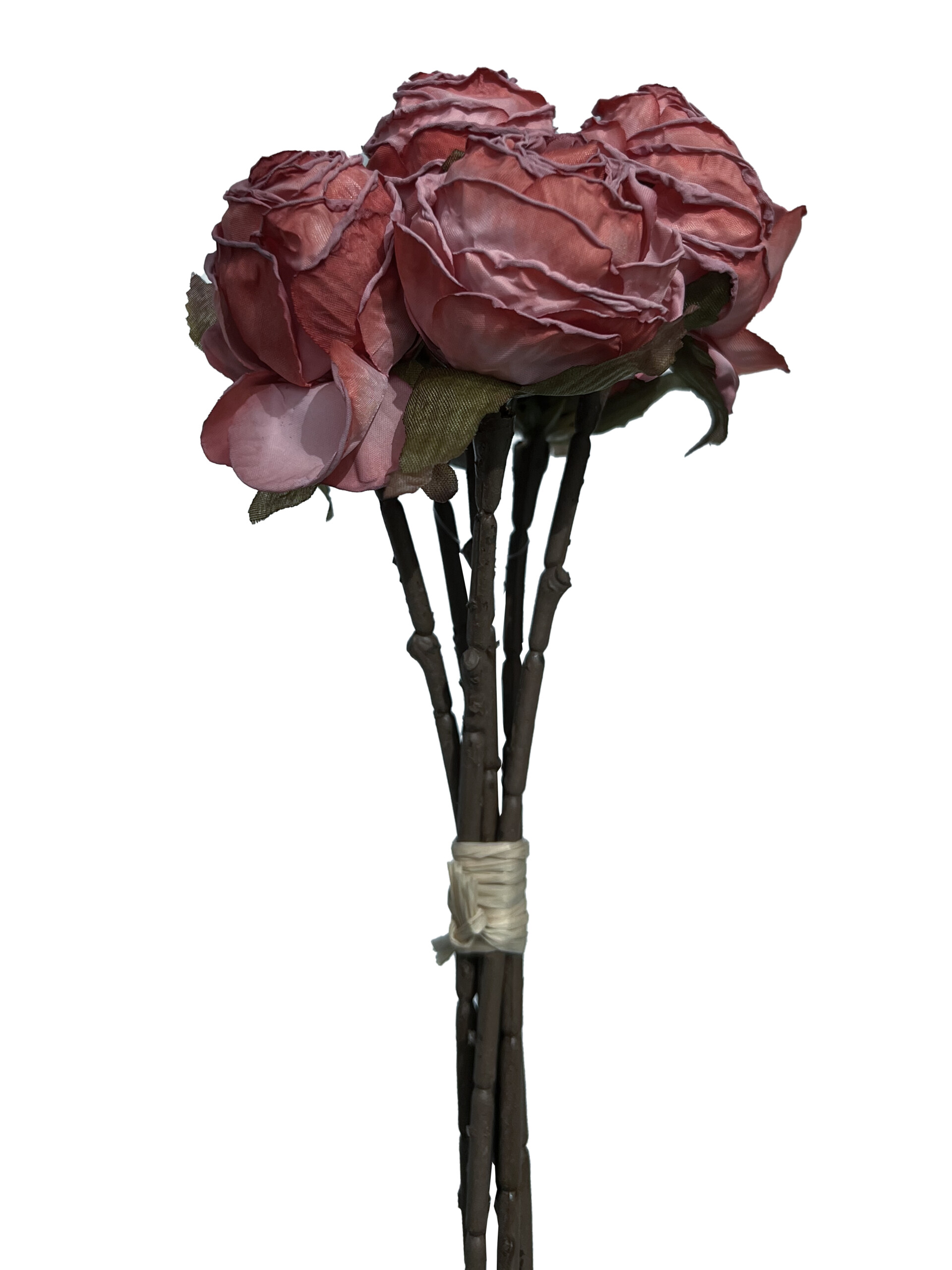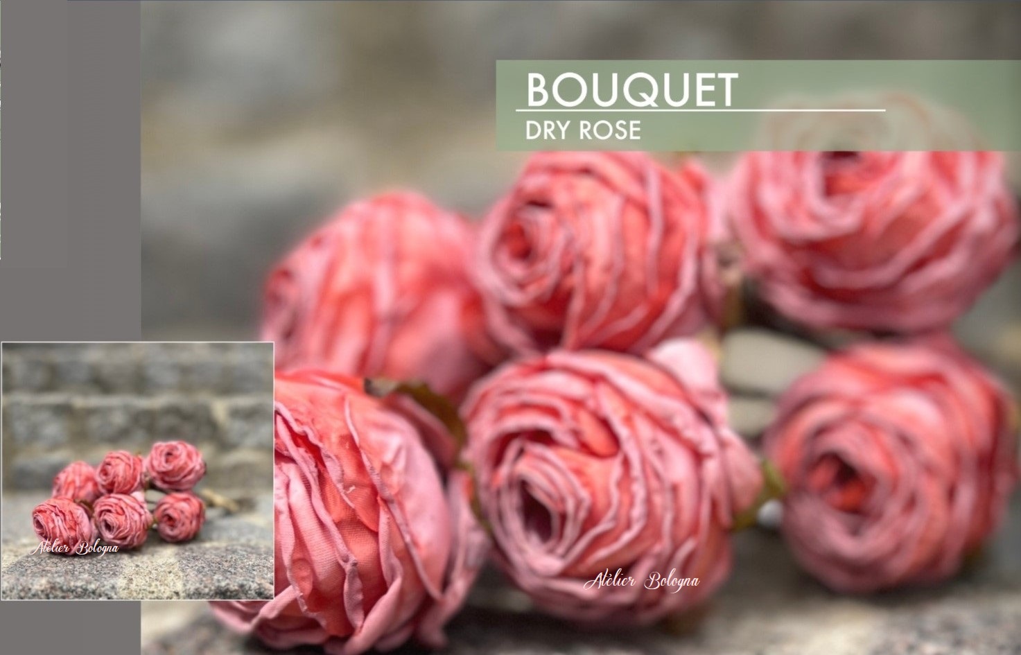 Bellissimo bouquet di Roselline artificiali, realizzate in tessuto con una speciale lavorazione artigianale per un realistico effetto essicato.