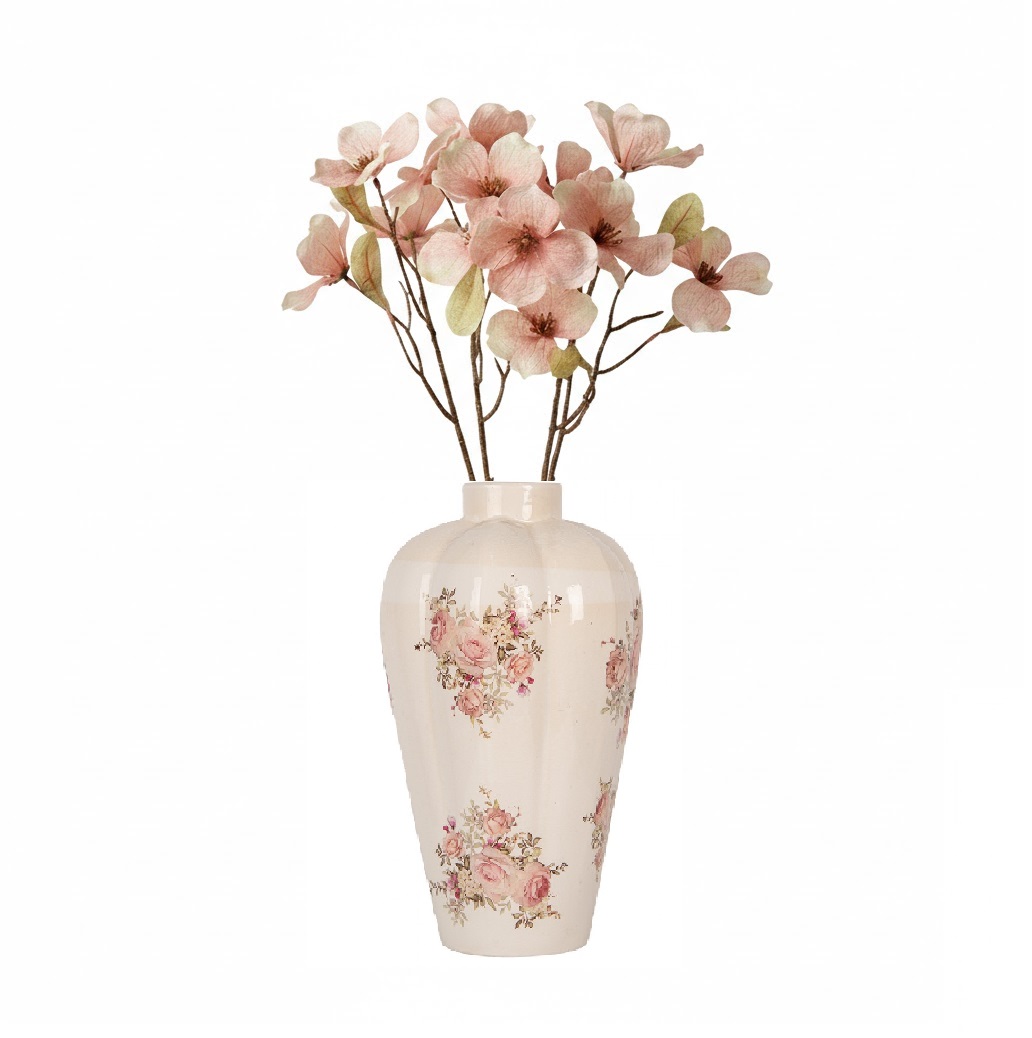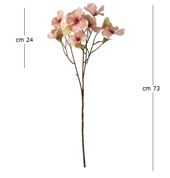 Bellissimo ramo fiorito colore Rosa antico sfumato ad effetto essicato. Il ramo è alto cm 73 ed è composto da 3 rametti di fiori e foglie.