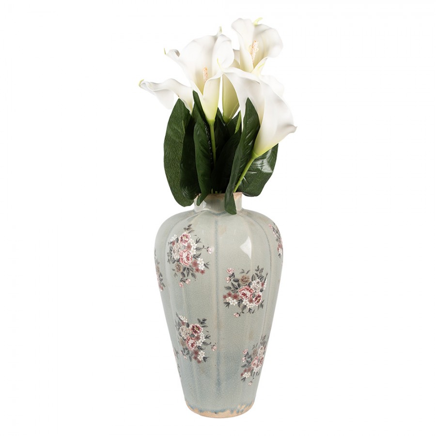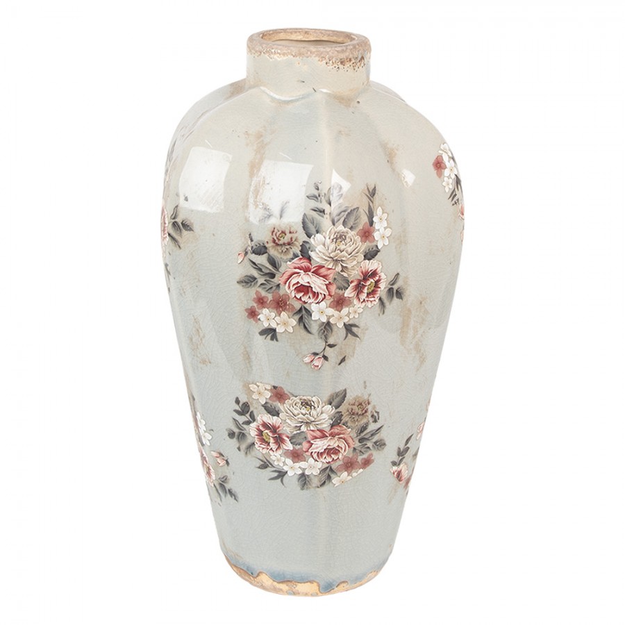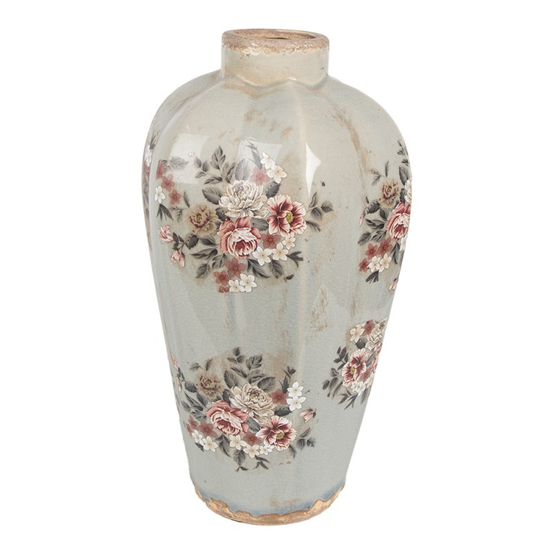 Bellissimo vaso realizzato in ceramica e decorato con bellissimi fiori nei toni swl roa antico e bianco si su base Grigio. Il vaso è antichizzato artigianalmente per conferirgli un aspetto vissuto.