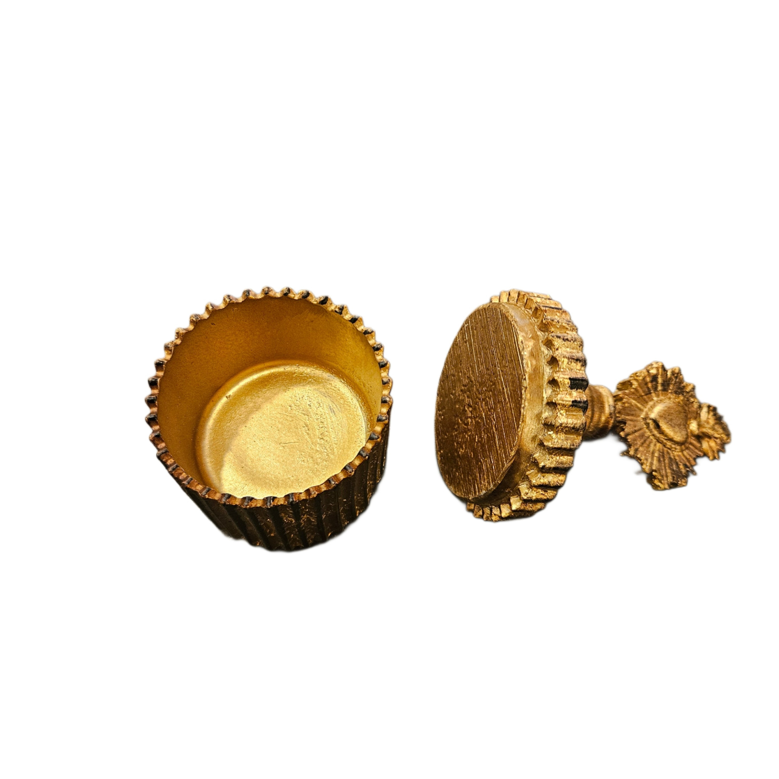 Bellissimo cofanetto porta gioie realizzato in resina color oro anticato con finitura opaca.