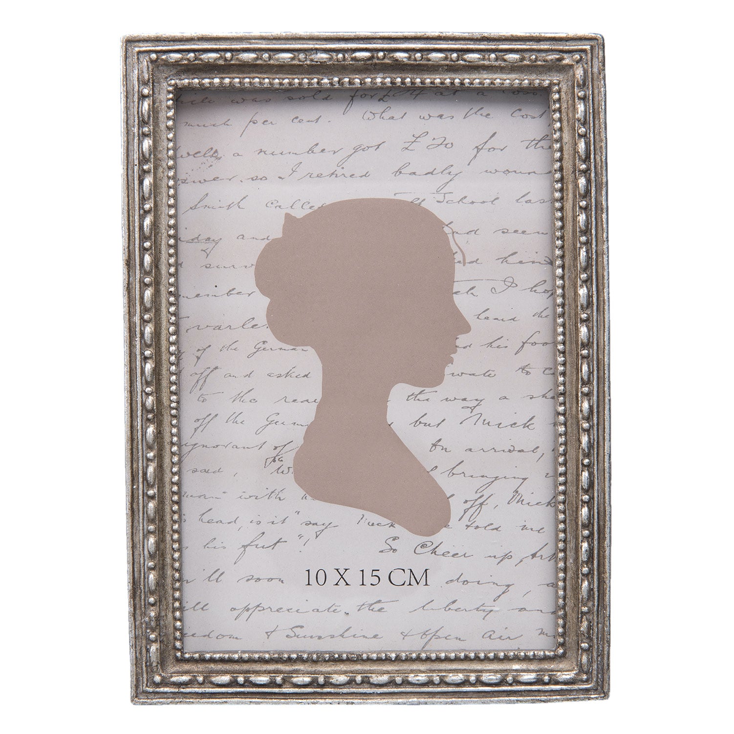 Bellissima cornice realizzata in resina con elegante bordo interamente lavorato con motivo a rilievo. Colore Argento antichizzato
