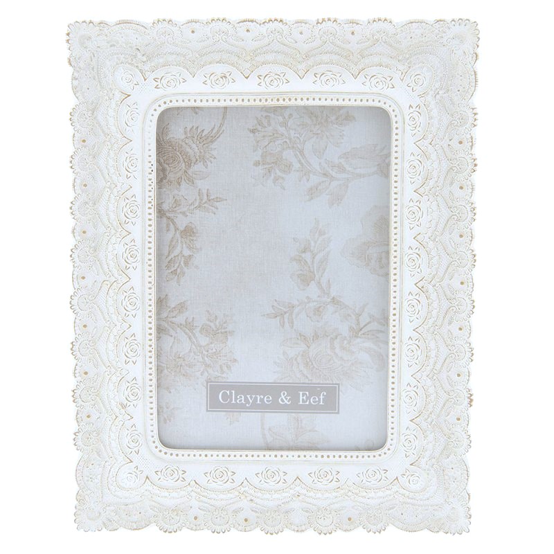 Bellissima cornice portafoto realizzata in resina con decori in rilievo. Colore Grigio chiarissimo sbiancato e rilievi con sporcature dorate.