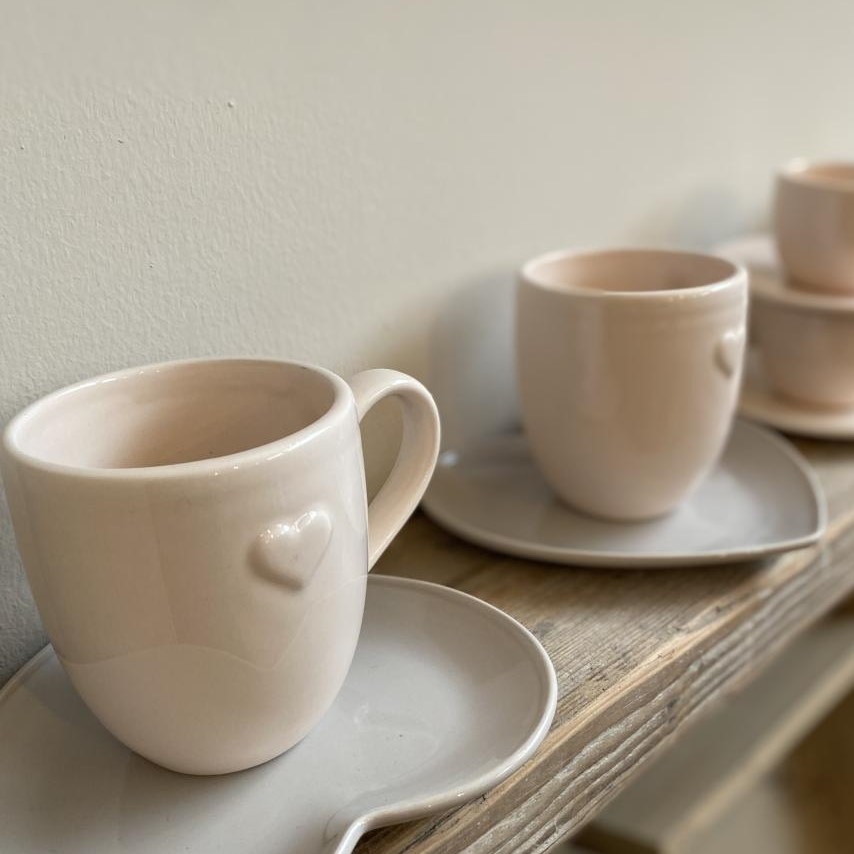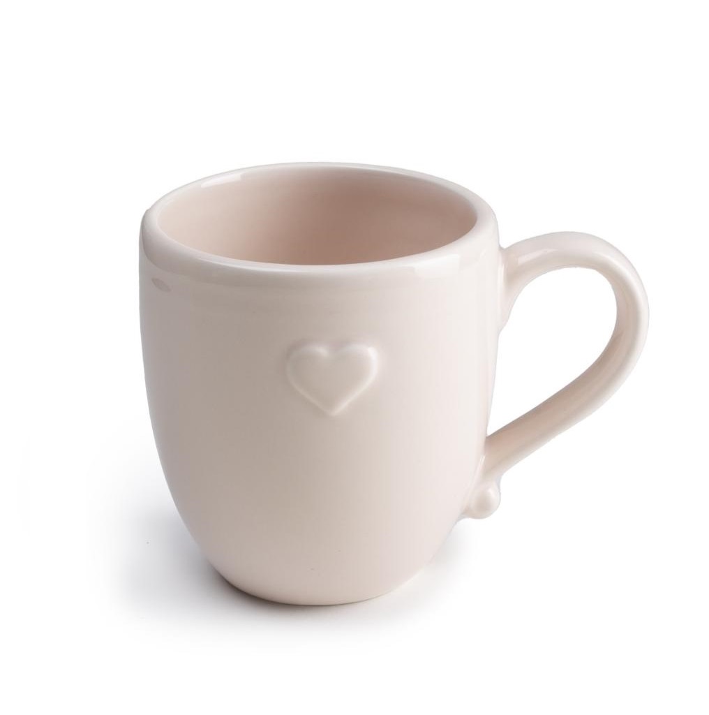 Dallo stile romantico e raffinato, ogni mug è impreziosita da un delicato cuoricino in rilievo ed è perfetta per ambienti dallo stile Shabby Chic, Country o minimal romantico.
