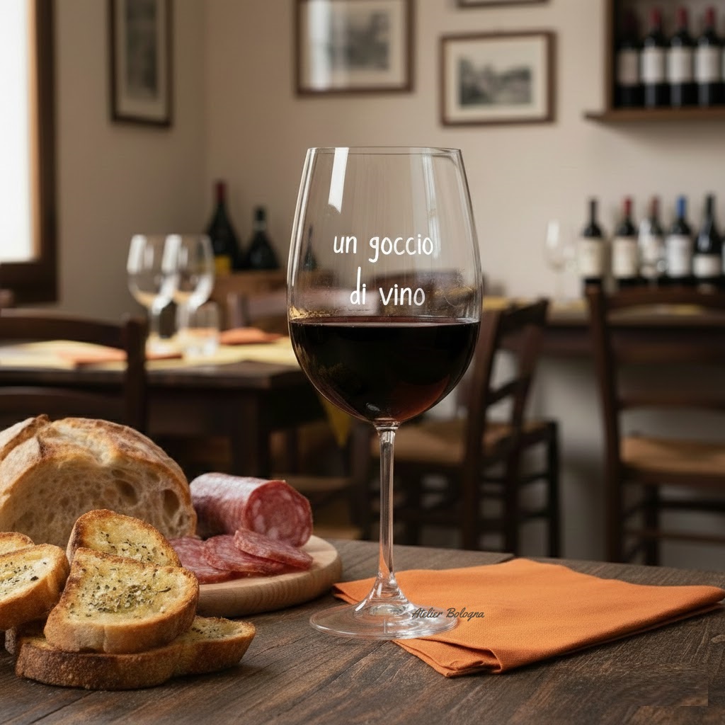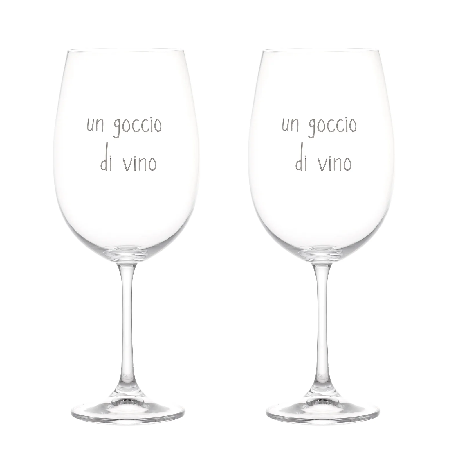 Set 2 calici vino con serigrafia bianca “un goccio di vino”