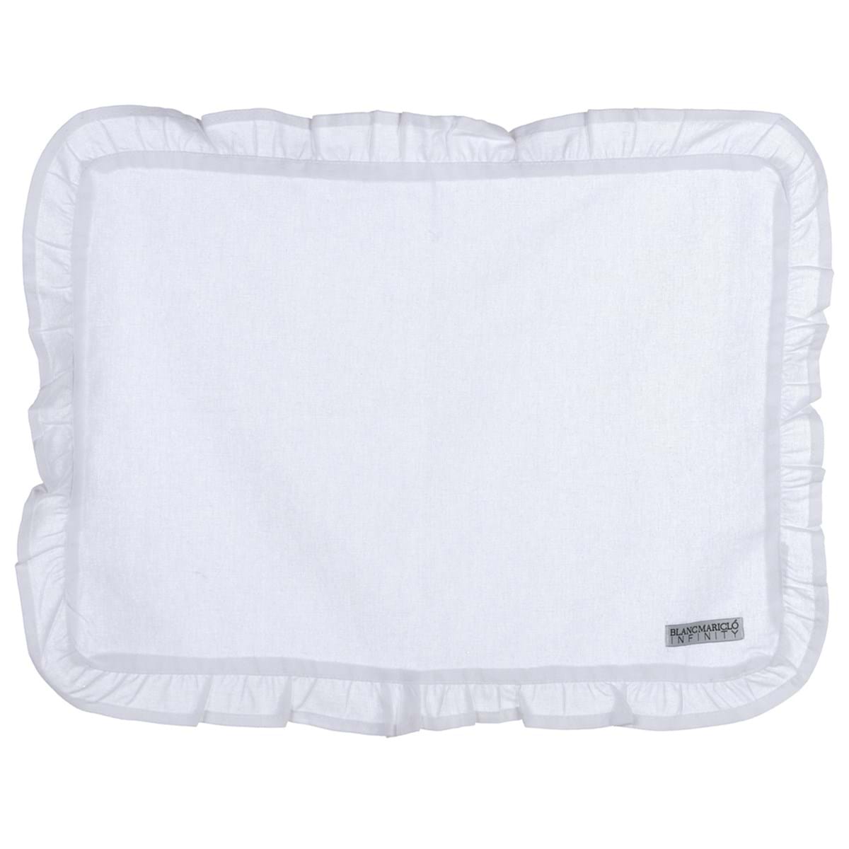 Bellissima tovaglietta rettangolare realizzata in tessuto misto cotone, con piccola rouche sui 4 lati. Colore Bianco