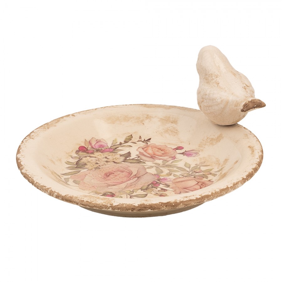 Bellissimo vassoio realizzato in ceramica decorato artigianalmente con un delicato motivo floreale e finitura vintage. Il vassoio è arricchito da un delizioso uccellino in ceramica sul bordo.
