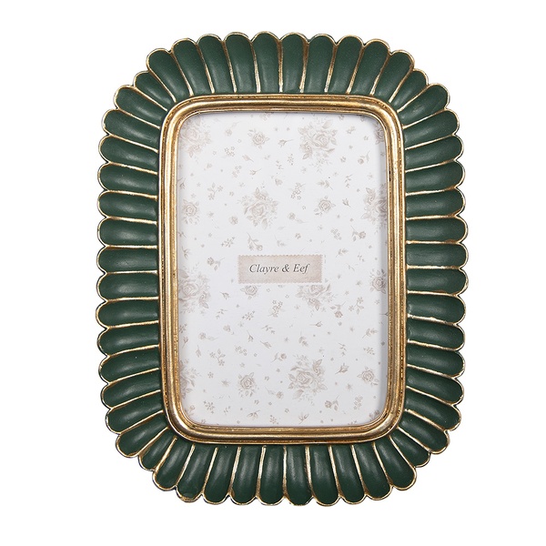 Bellissima cornice realizzata in resina color Verde Smeraldo antichizzato con finiture e bordini dorati.