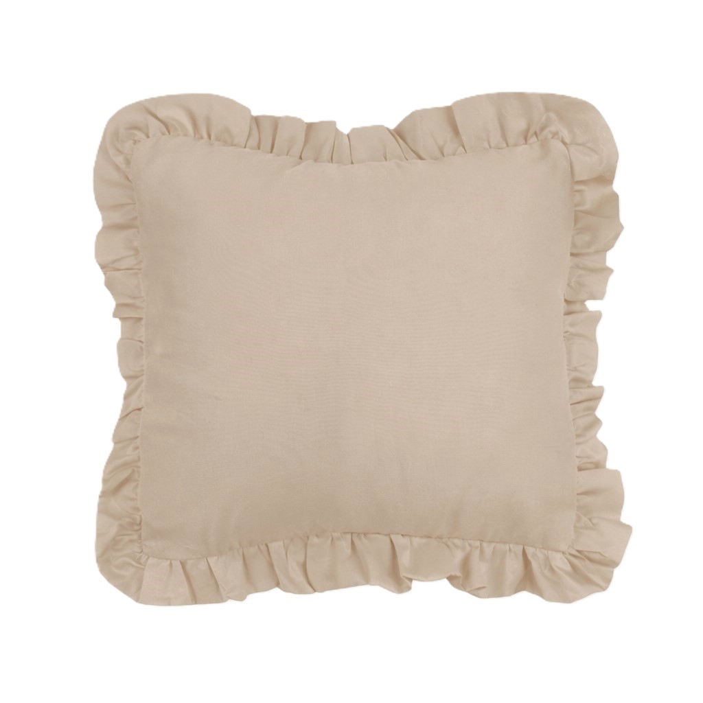Bellissimo cuscino arredo realizzato in morbido cotone con gala sui 4 lati, colore Beige.