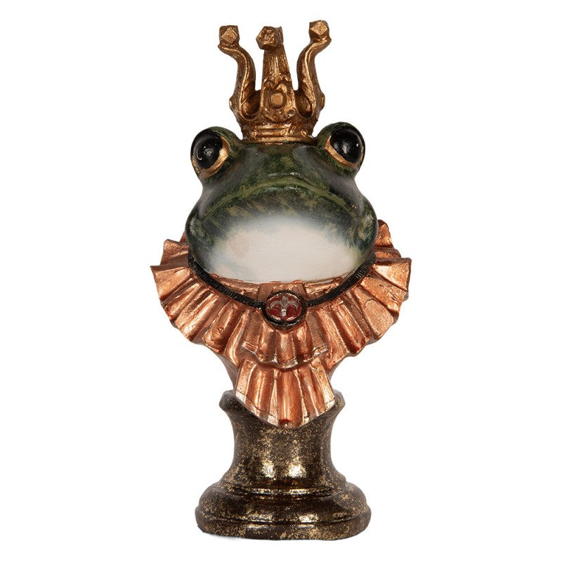 Bellissimo busto realizzato in resina, raffigurante un ranocchio con corona su piedistallo.
