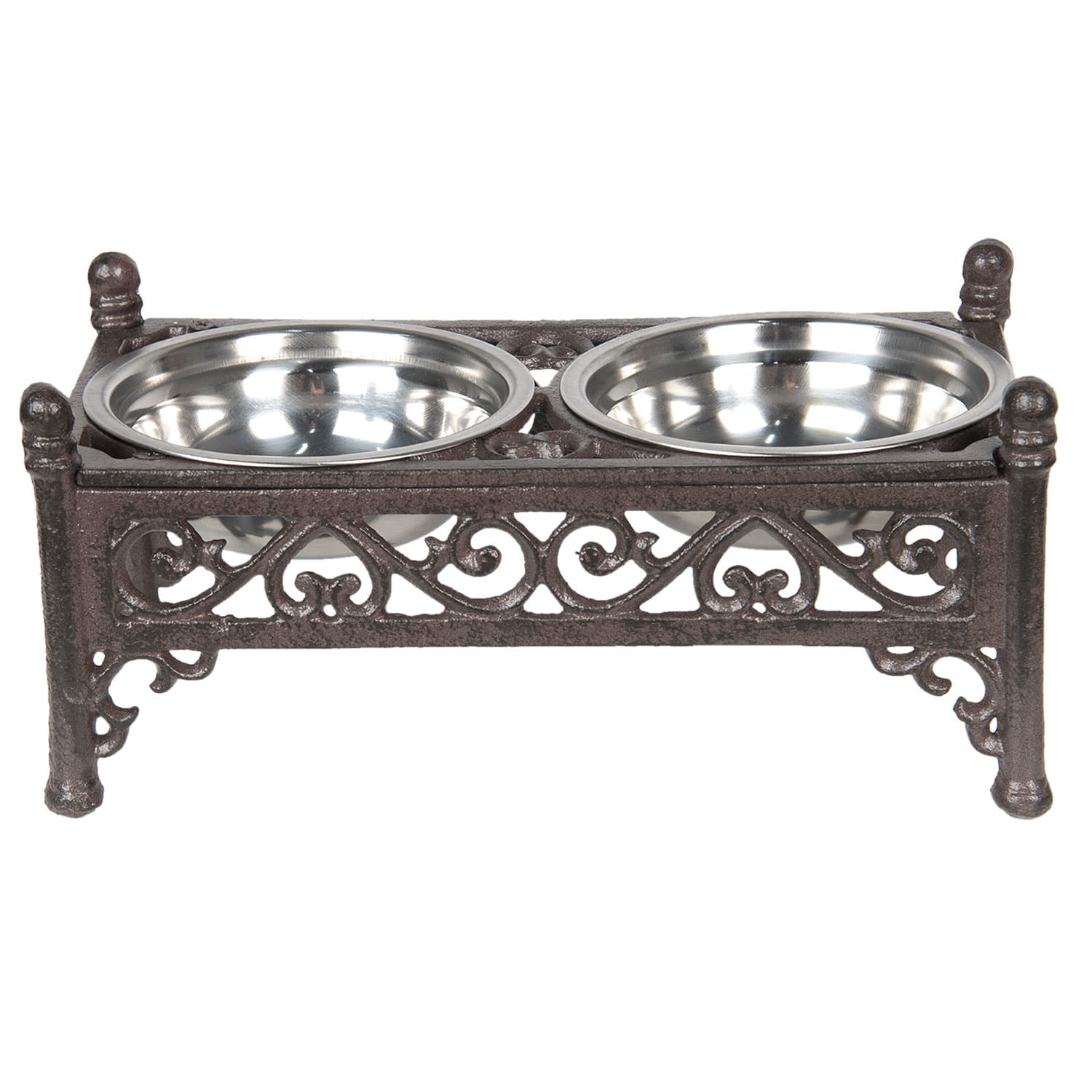 Bellissima ciotola doppia realizzata in ferro colore Marron scuro. Sono comprese 2ciotole in acciaio asportabili e lavabili.