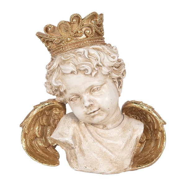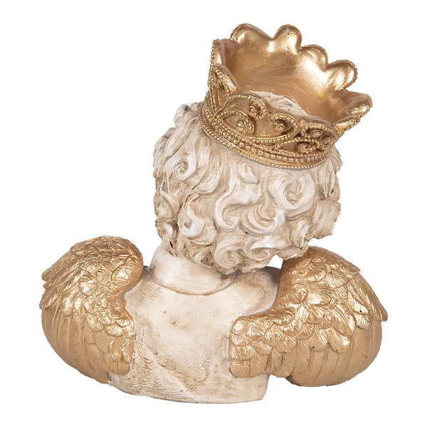 Deliziosa statuina realizzata in resina raffigurante un Angelo color Avorio con ali dorate ed una bellissima corona ricca di particolari, anch’essa dipinta di Oro.