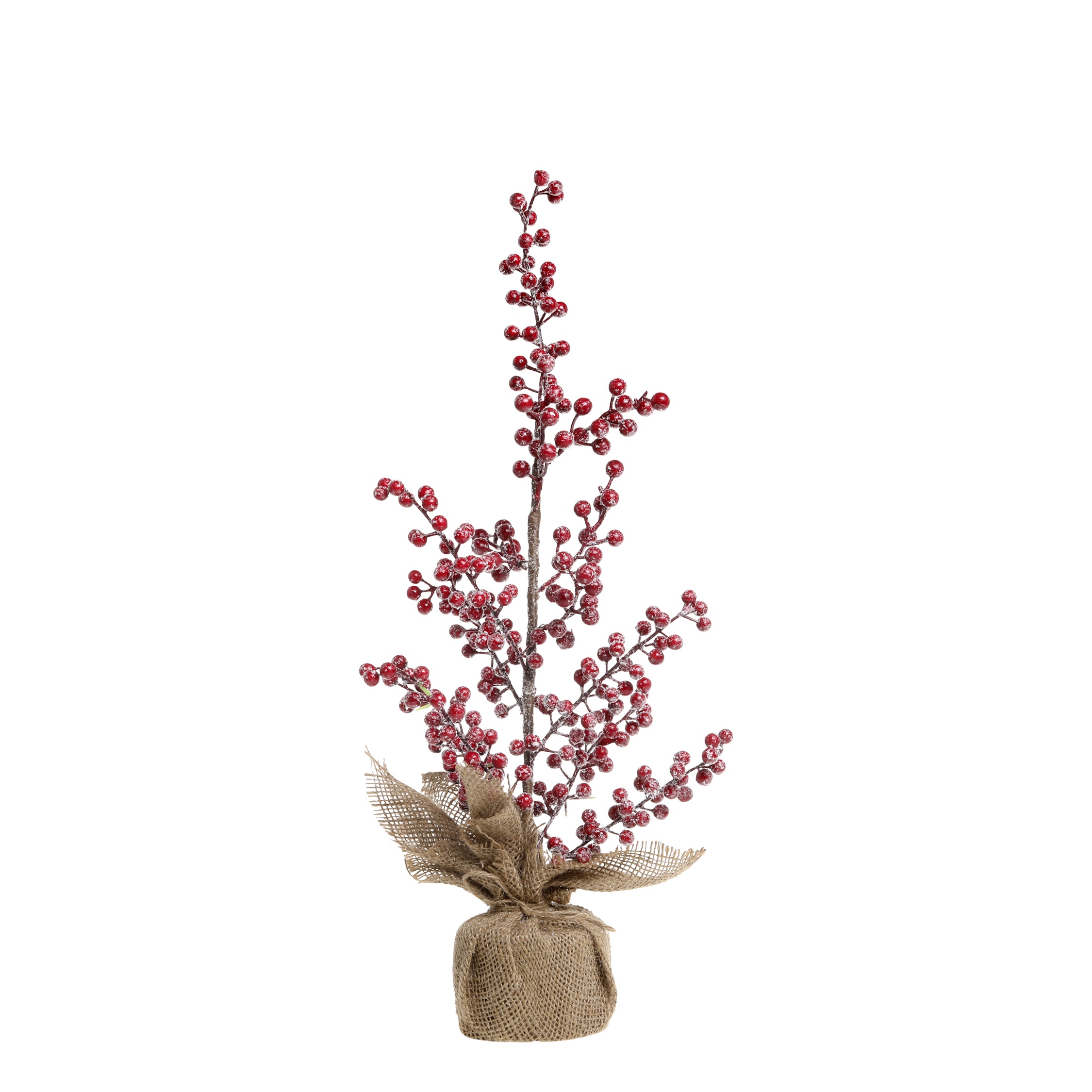 Bellissimo alberino Natalizio di bacche rosse ad effetto innevato. Particolarmente leggero e poco ingombrante, è indicato anche per decorare la tua tavola durante le festività natalizie.