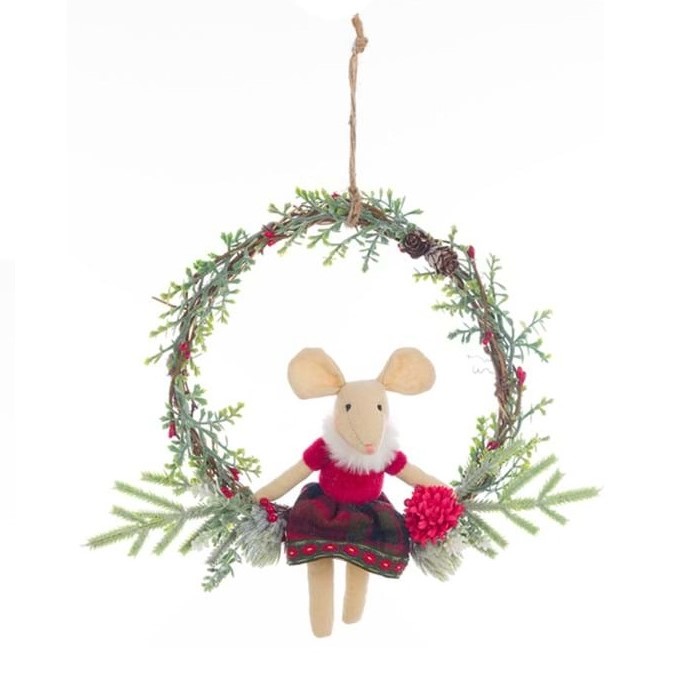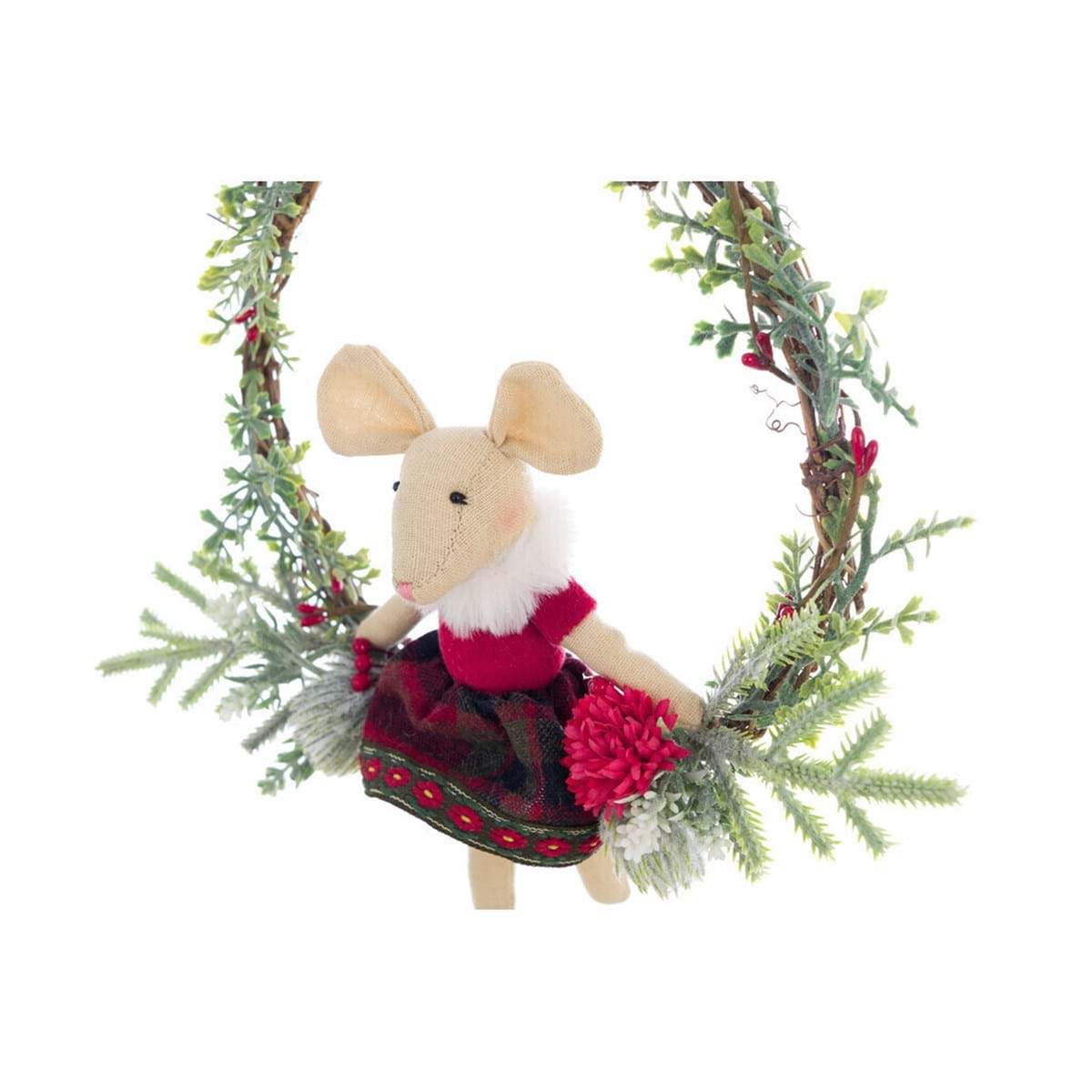 Bellissima ghirlanda natalizia, realizzata con rametti artificiali su una corona di legno intrecciato. La ghirlanda è impreziosita da una simpatica Topolina in abito natalizio.