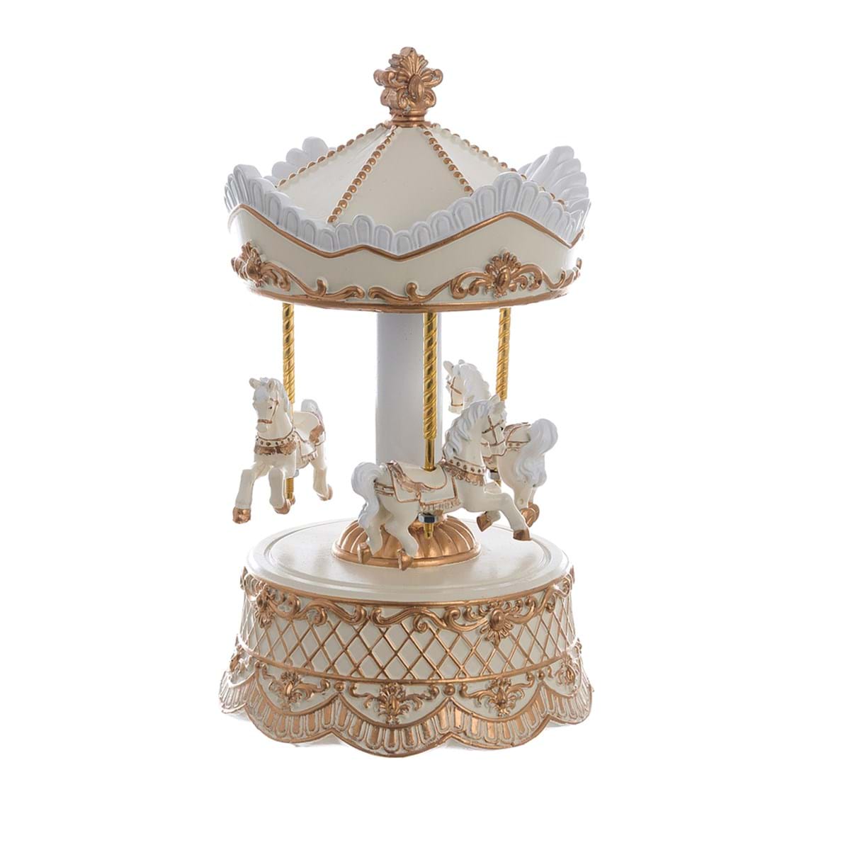 Bellissimo carillon a carica manuale a forma di giostrina con cavalli.
