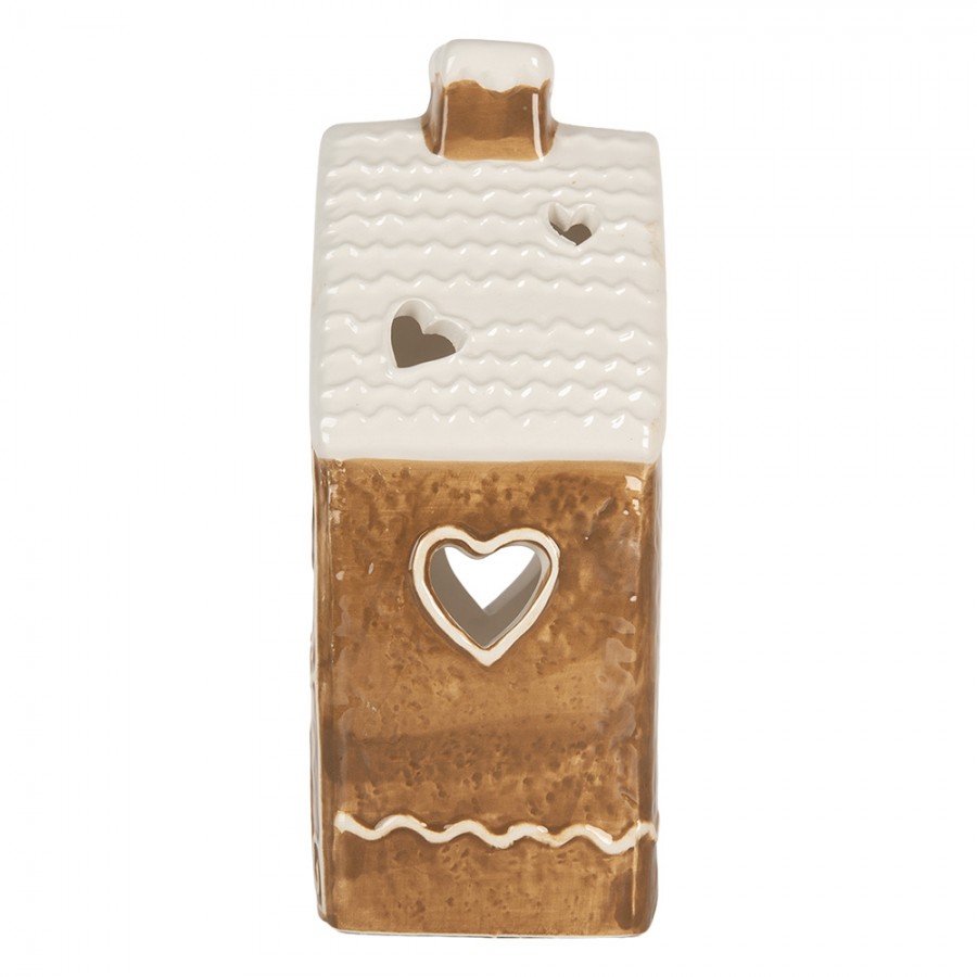 Bellissima casetta porta tealight realizzata in ceramica smaltata colore Beige con tetto Bianco. Decorata con finestrelle a forma di cuore profilate di Bianco, che lasciano filtrare la luce della candela tealight, creando un delicato effetto luminoso.