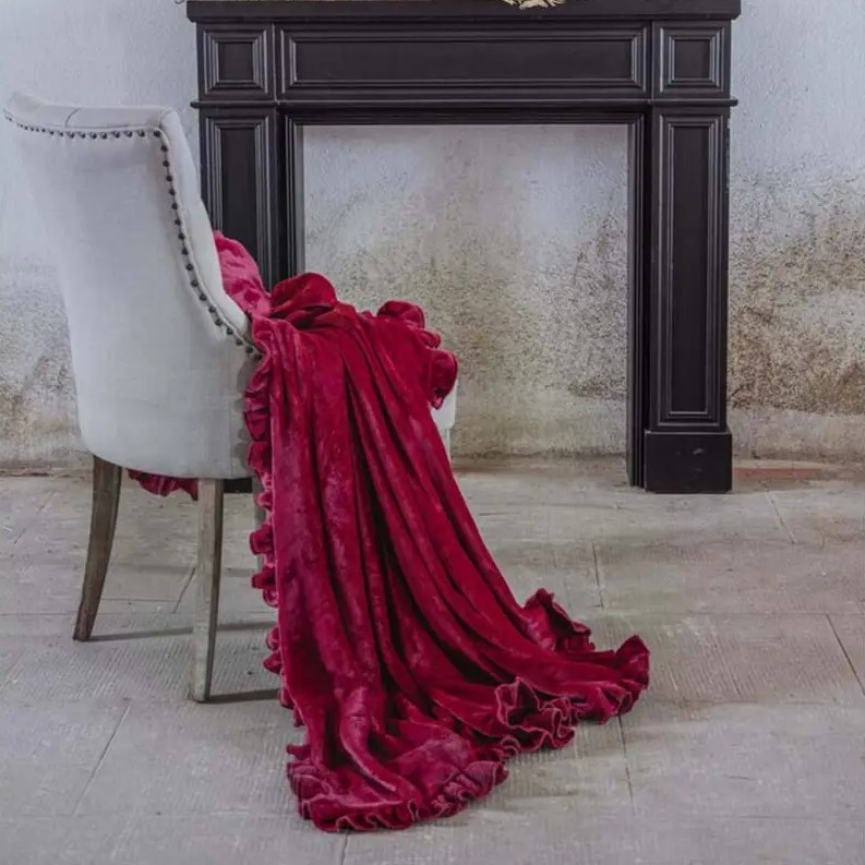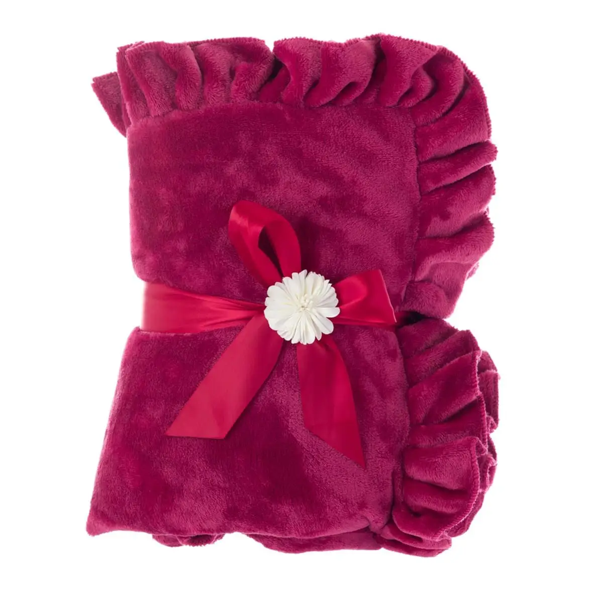 Bellissimo plaid realizzato in morbido pile, con elegante galetta sui 4 lati. Colore Bordeaux