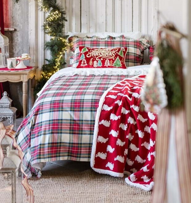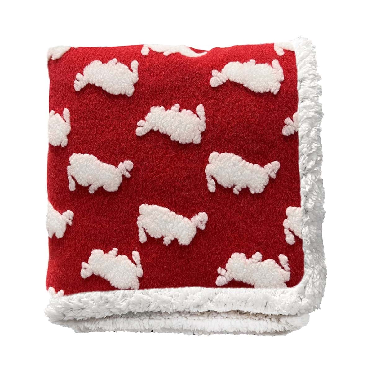 Bellissimo plaid realizzato in panno con ricamo a rilievo. Colore Rosso con ricami bianchi