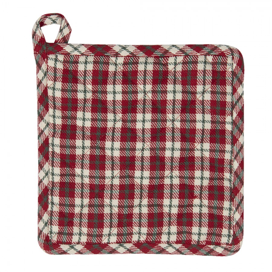 Bellissima presina realizzata in puro cotone decorata col classico motivo tartan ed un cervo davanti con bordino.