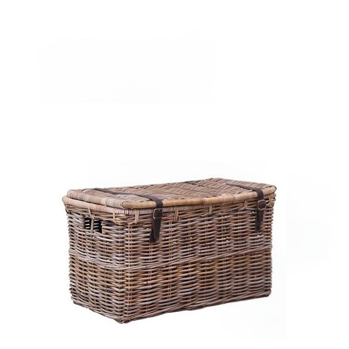 Bellissimo baule rettangolare realizzato in rattan intrecciato , con coperchio e chiusura in similpelle.