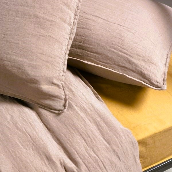 Parure copripiumino 3 pz. Double face Lino/Cotone, Made in Italy, Nocciola