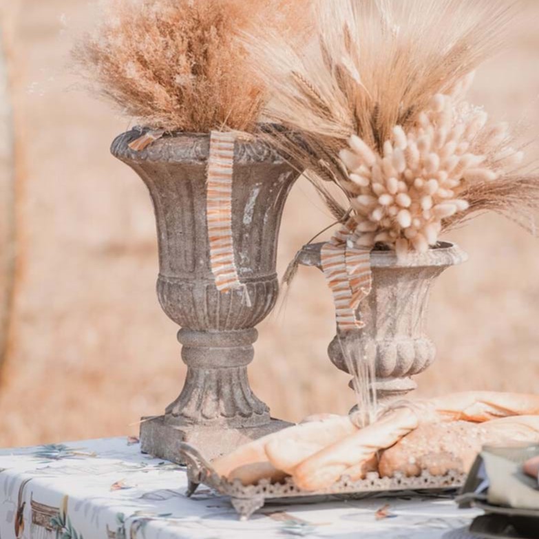 Bellissimo vaso decorativo in stile classico, realizzato in Resina, con finitura invecchiata. Colore Marrone e Beige chiaro anticato