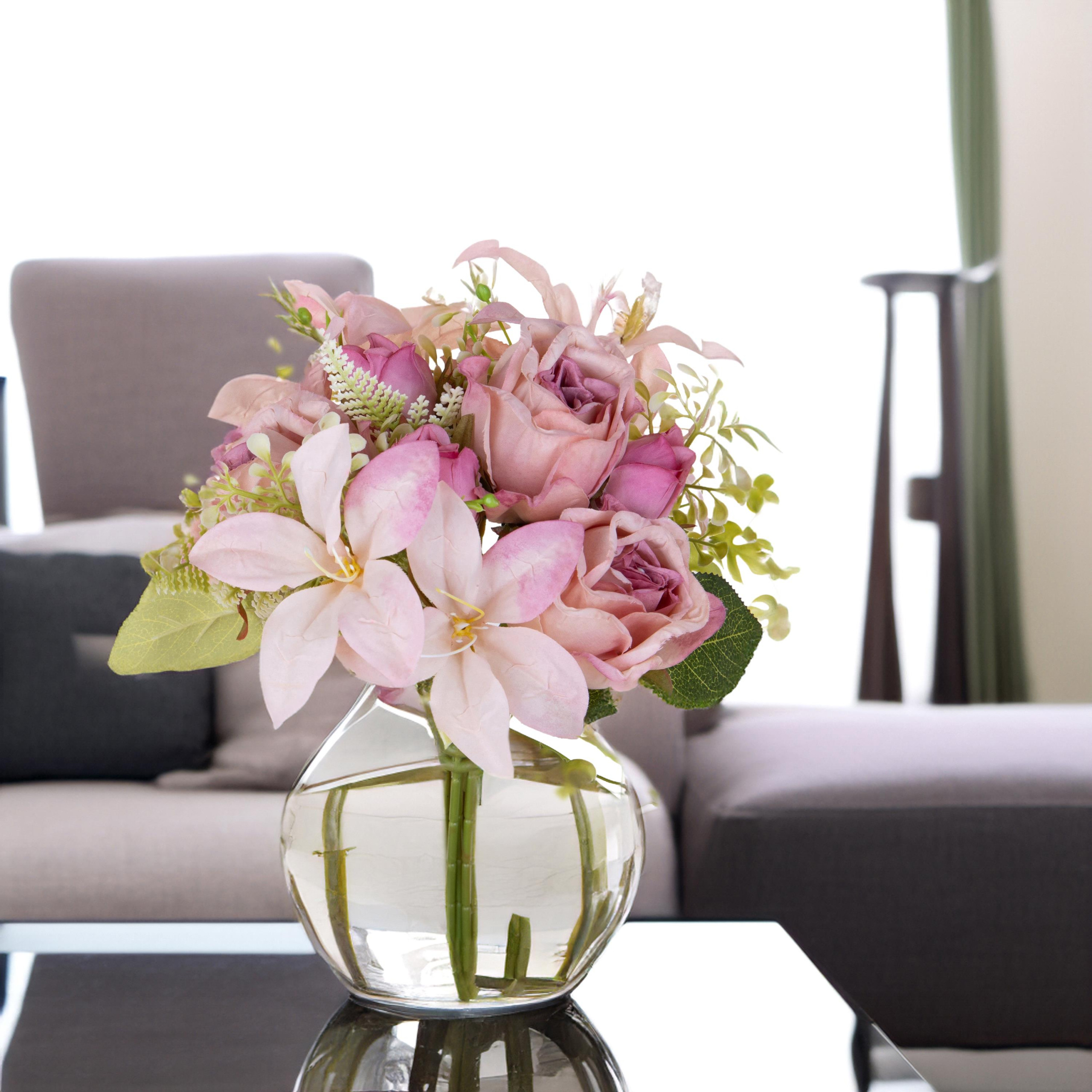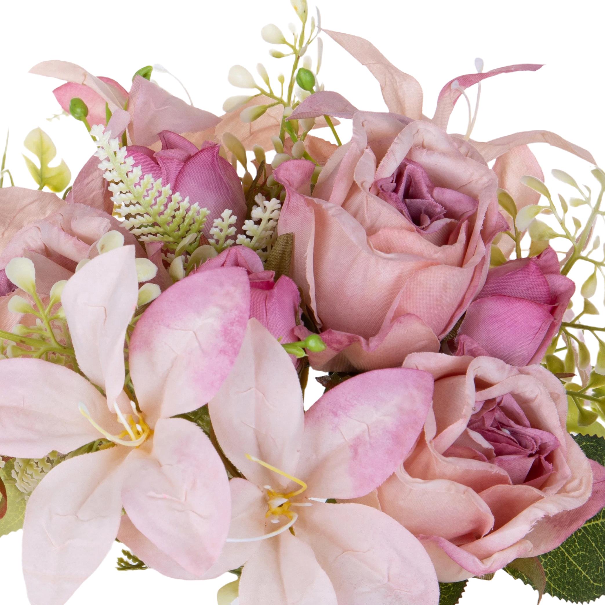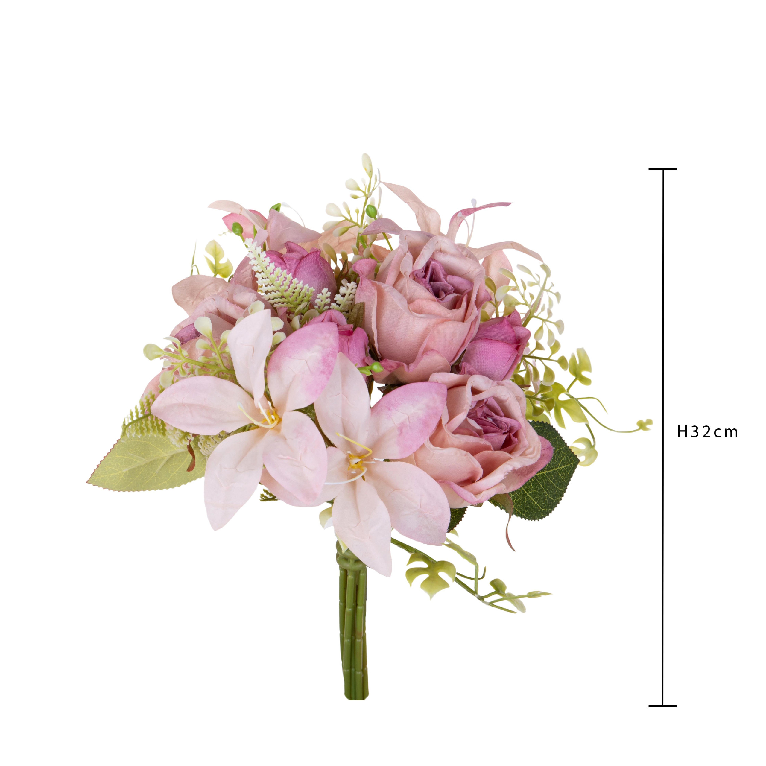Bouquet Romantico di Rose e fiori sintetici, colore rosa tenue cm 32h