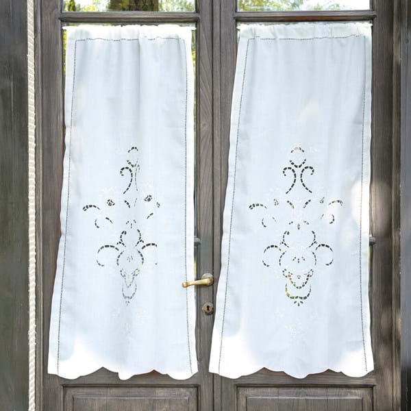 Bellissima e romantica coppia di tende a vetro in perfetto stile vintage con motivo ad intarsio, adatte ad ogni tipo di ambiente e stile.