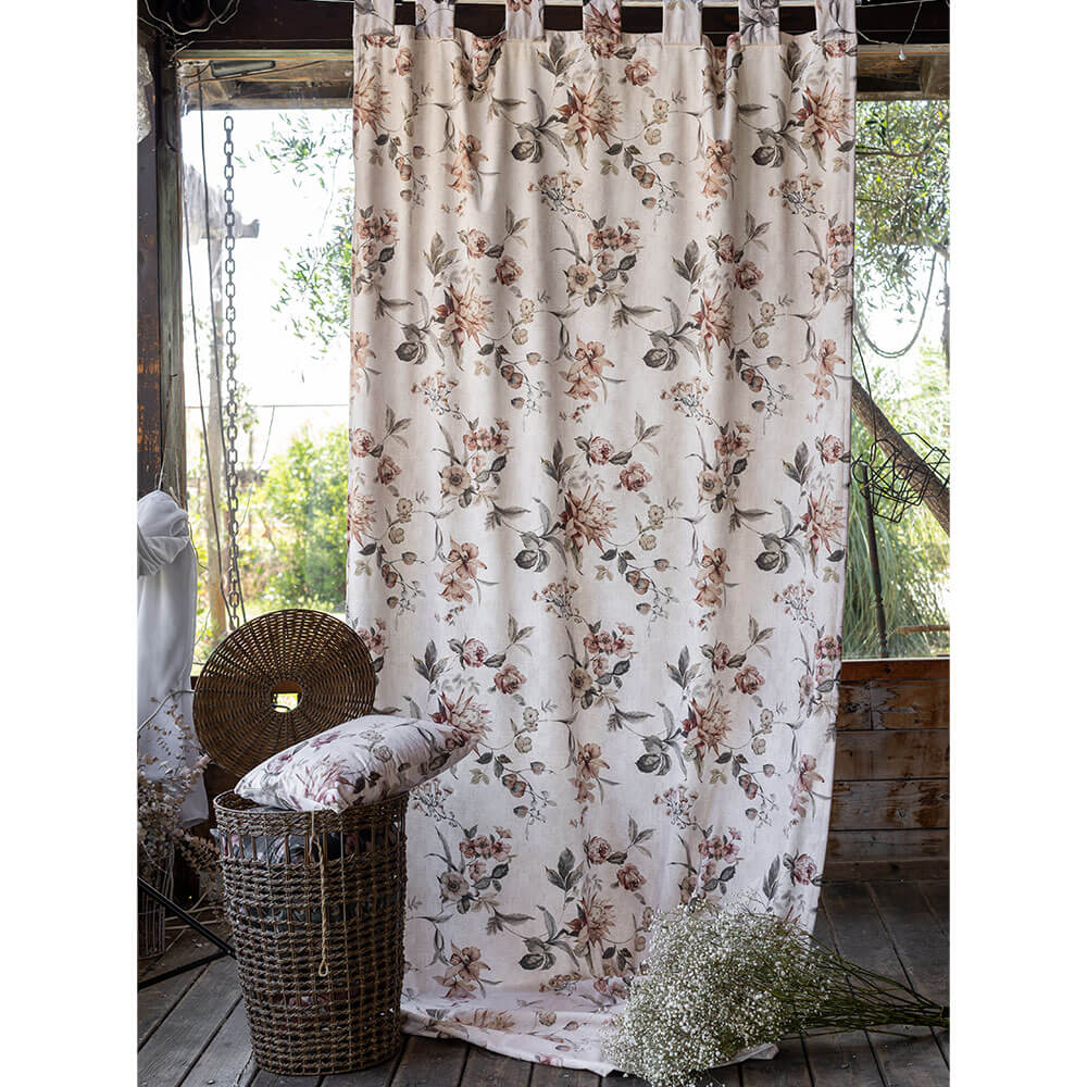 Set di 2 bellissime tende realizzate in morbido velluto stampato con delicato morivo floreale su fondo Avorio.