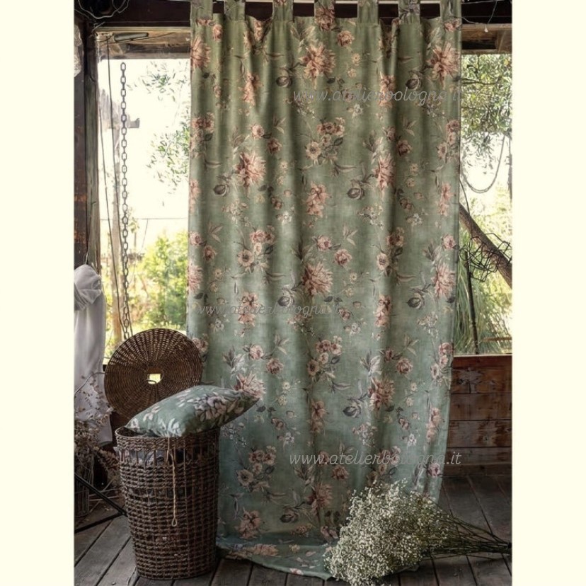 Set di 2 bellissime tende realizzate in morbido velluto stampato con delicato morivo floreale su fondo Verde Salvia Polvere.