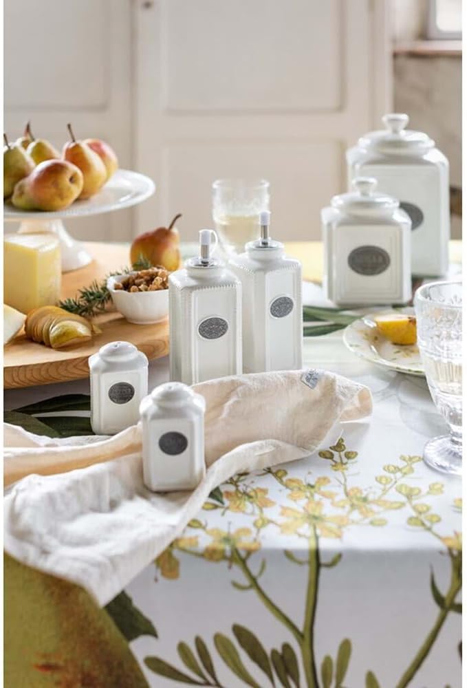 Bellissimo set Olio/Aceto + sale/Pepe realizzato in ceramica bianca e decorato con scritta serigrafata.