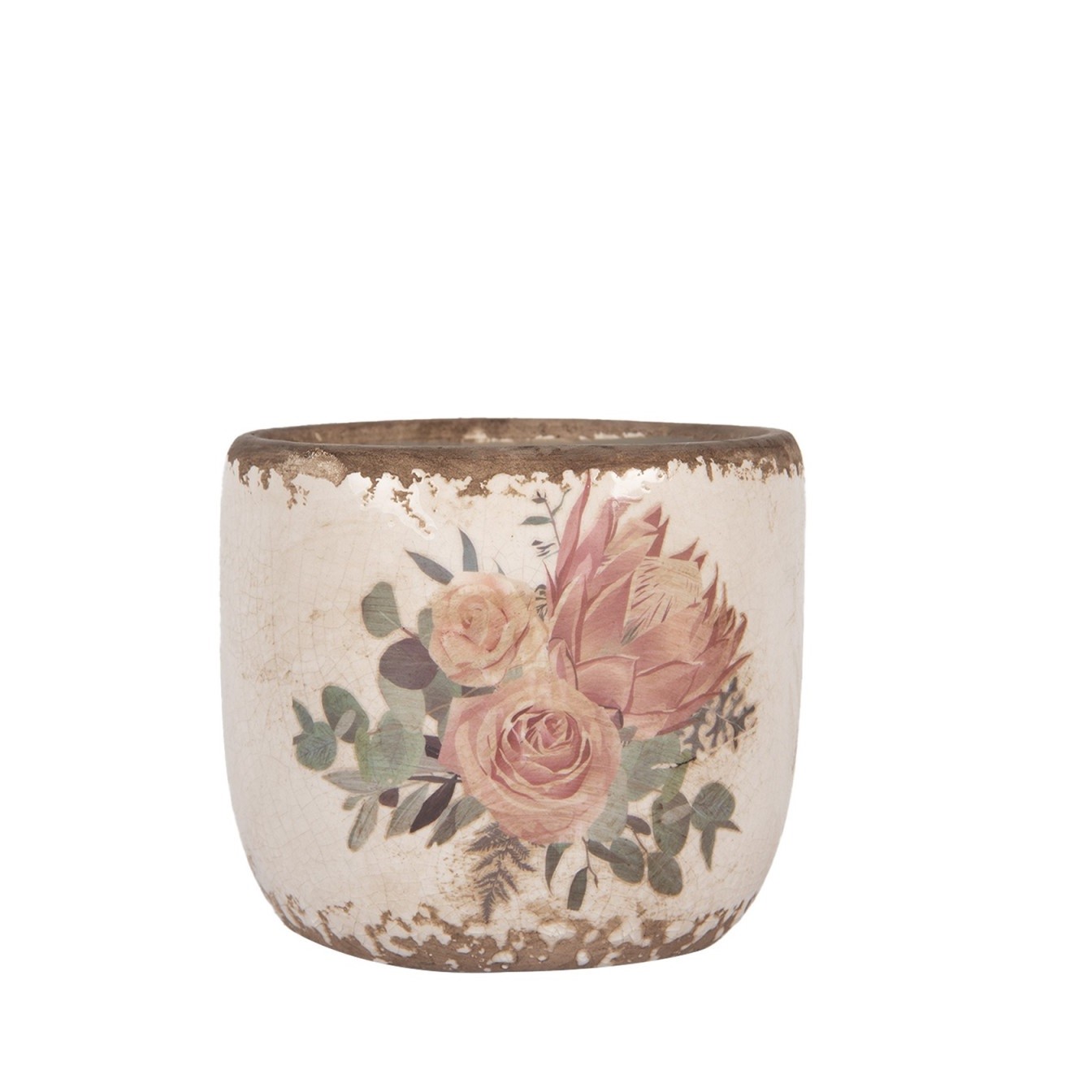 Bellissimo vaso realizzato in ceramica, decorato con motivo floreale e antichizzato artigianalmente per conferire un aspetto vissuto.
