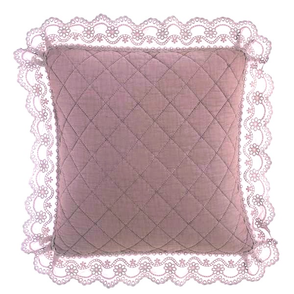 Bellissimo cuscino realizzato in morbida microfibra con trapuntatura a rombi piccoli e impreziosito da una bella gala di pizzo sui 4 lati. Colore Rosa