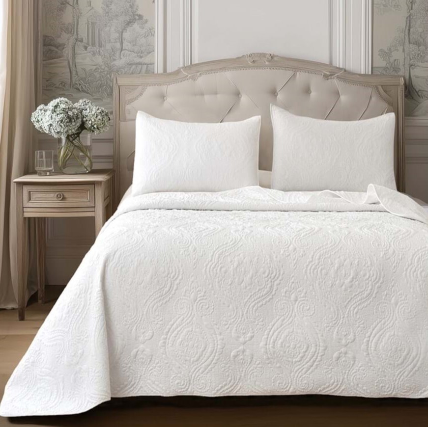 Bellissimo set di 2 copriguanciali realizzati in misto cotone, interamente trapuntati con elegante disegno floreale in classico stile Provenzale.