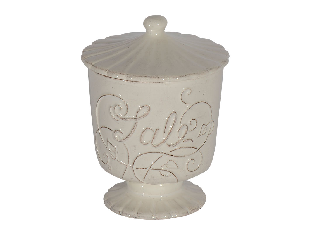 Ogni barattolo è interamente decorato con volute e scritte in rilievo.