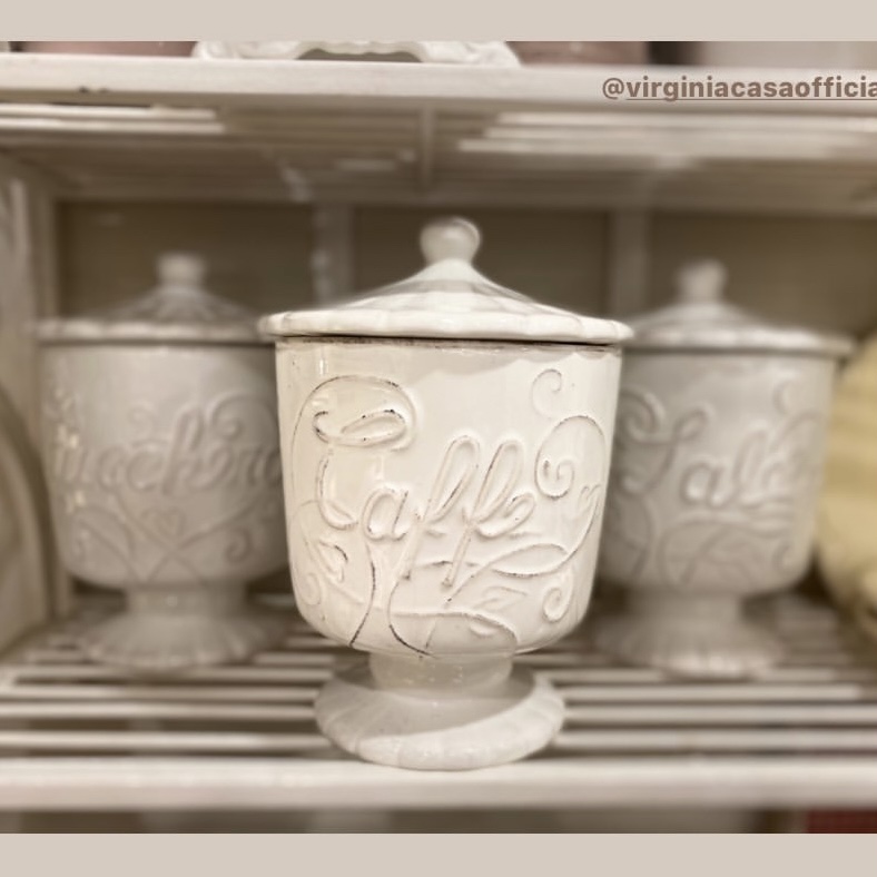 Bellissimo set di 3 barattoli con coperchio realizzati in ceramica. La produzione di questo prodotto è fatta interamente a mano, dalla realizzazione al decoro.