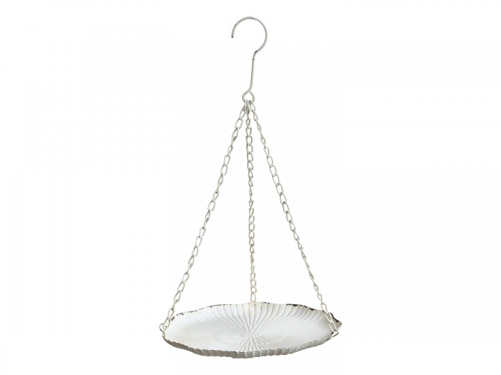 La sua silhouette delicata e la finitura chiara evocano l’eleganza delle antiche serre francesi. Le catenelle sottili sostengono un vassoio dai bordi dolcemente ondulati.