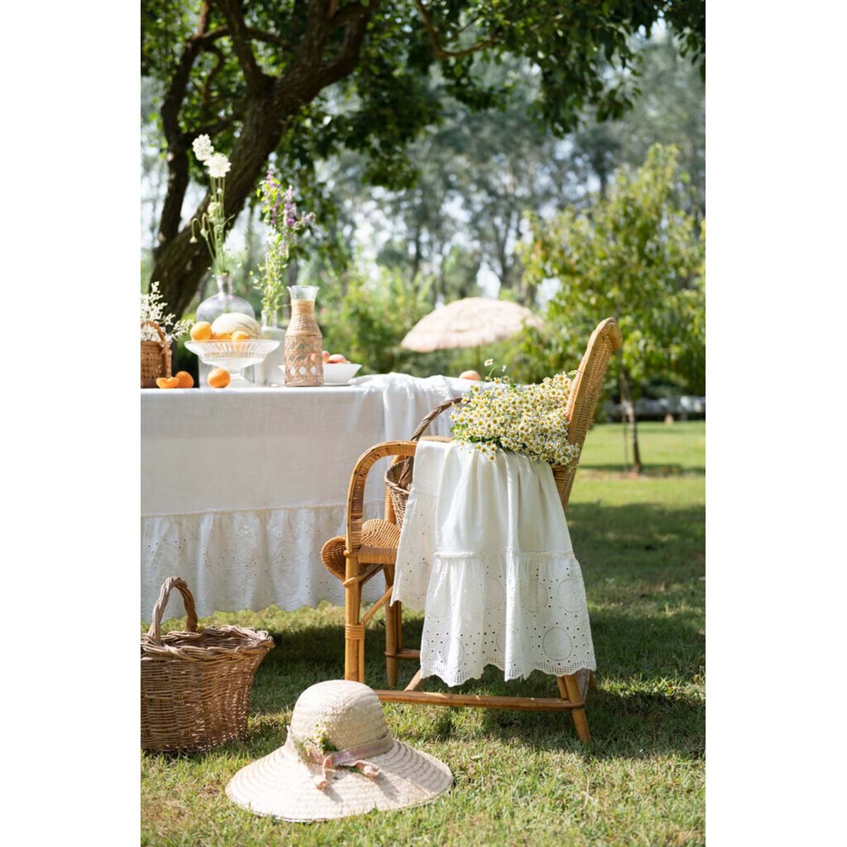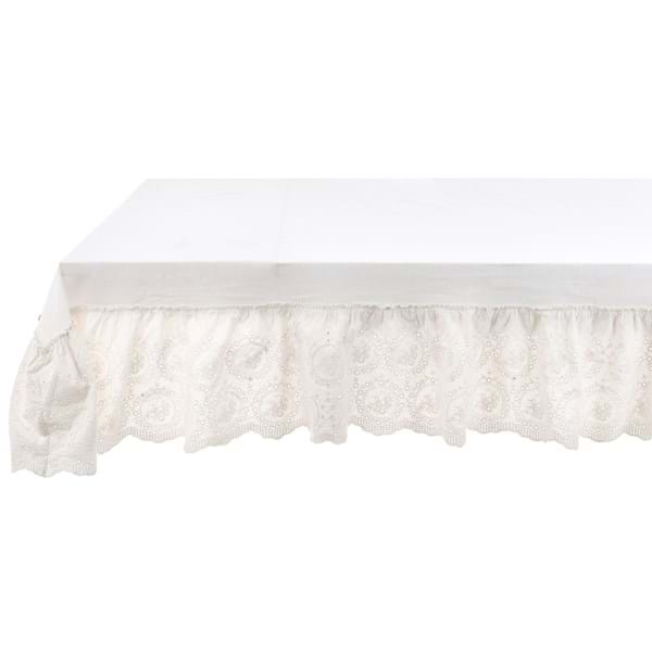 Bellissima tovaglia quadrata realizzata in una bella tela di puro cotone con balza di cm 23 in pizzo Sangallo. Colore Bianco Vintage