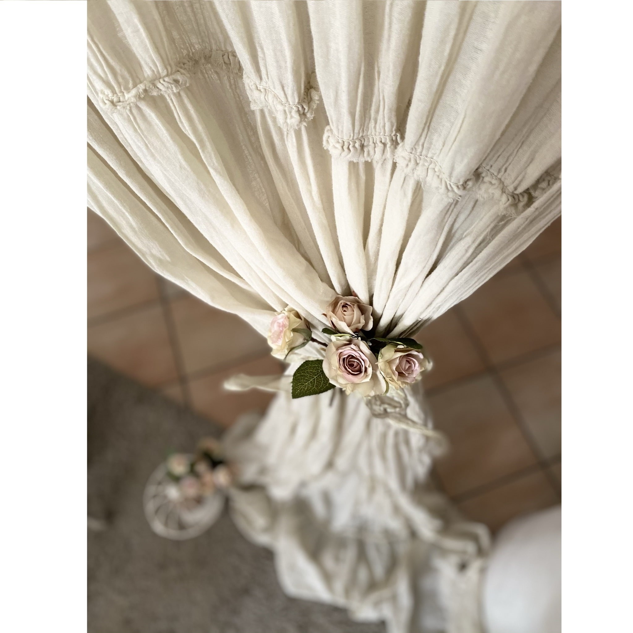 Set di 2 bellissime tende realizzate in puro e leggerissimo cotone. La tenda è composta da pannelli orizzontali cuciti e drappeggiati tra loro.