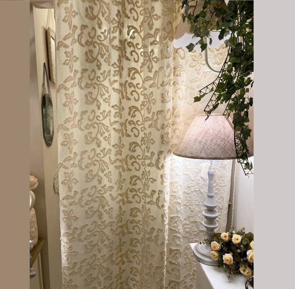Set di 2 bellissime tende interamente ricamate con disegno in rilievo.